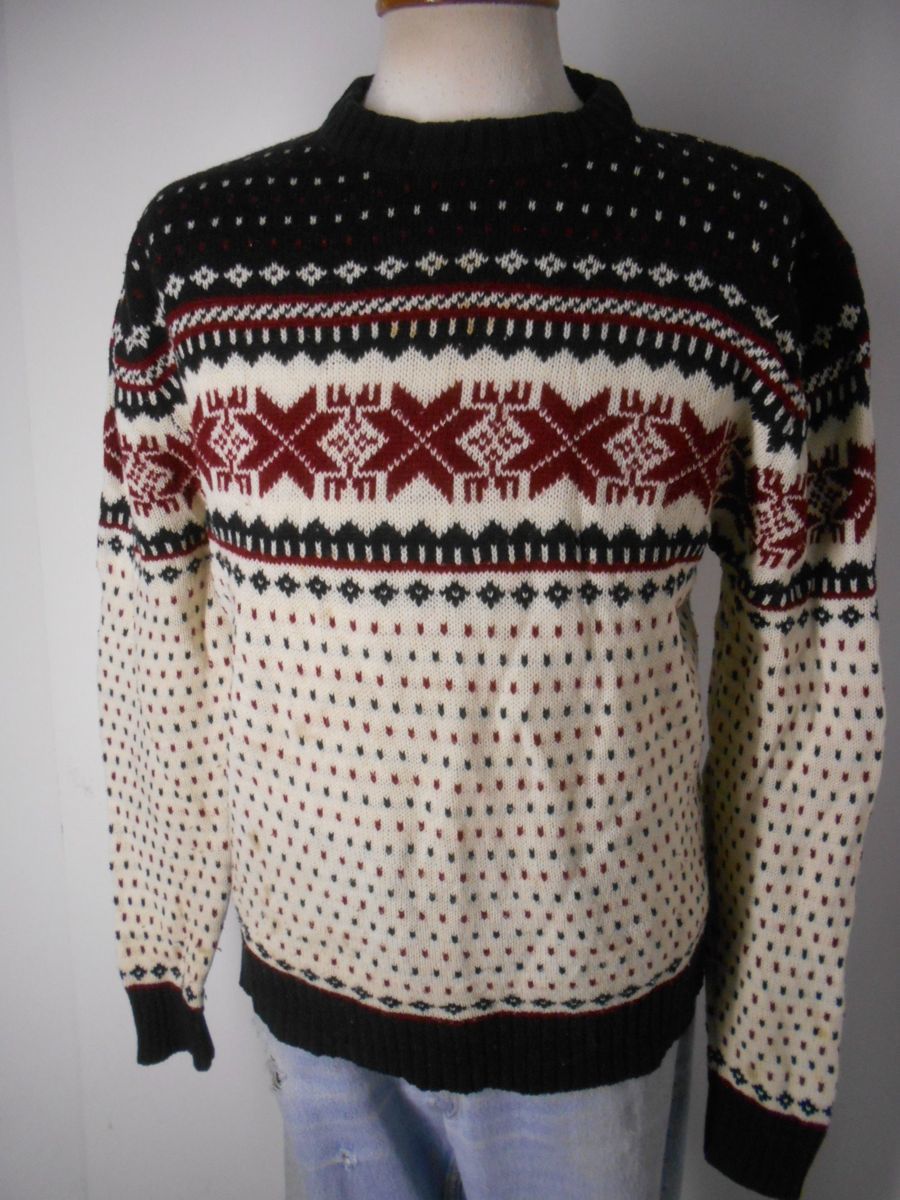 雪柄 セーター L 黒 メンズ アメカジ アクリル 古着 c748