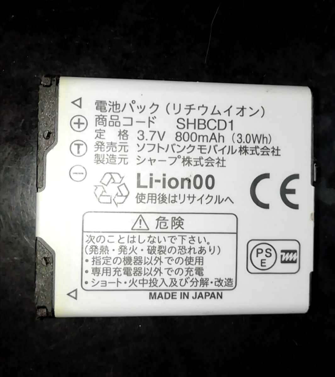 【中古】ソフトバンクSHBCD1純正電池パックバッテリー【充電確認済】