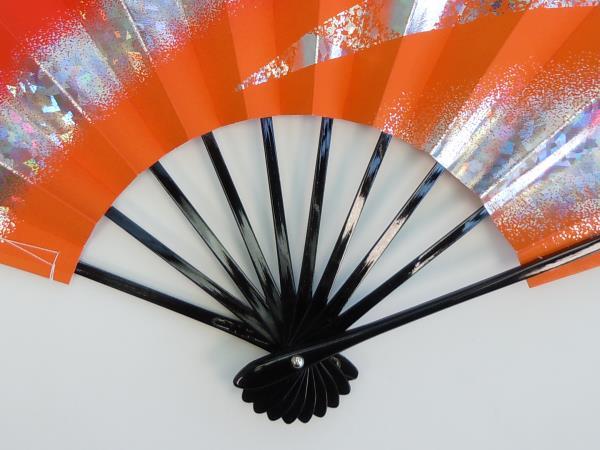 8120,舞扇子 日本舞踊、踊り用 29cm ホログラム箔・赤・銀 黒塗骨 京扇子 箱なし