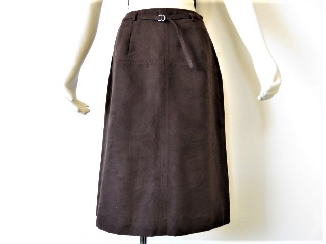 ■新品同様【McGREGORマックレガー 高級 ベルト付き 人工皮革 スェード スカート 【64】 ブラウン 上質美品 b1606