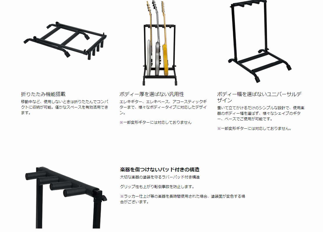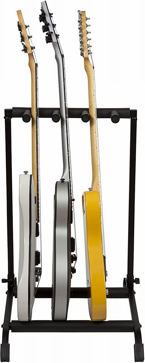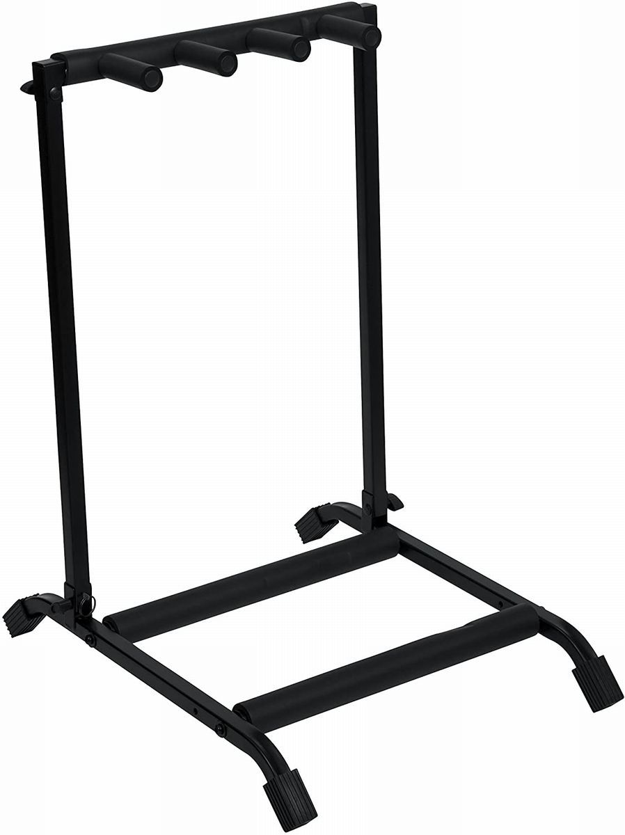 エレキギターやアコースティックギターを最大3本セット可能 / ブラックパウダーコート仕上げ / 丈夫なスチール製フレーム / 折り畳んで収納可能