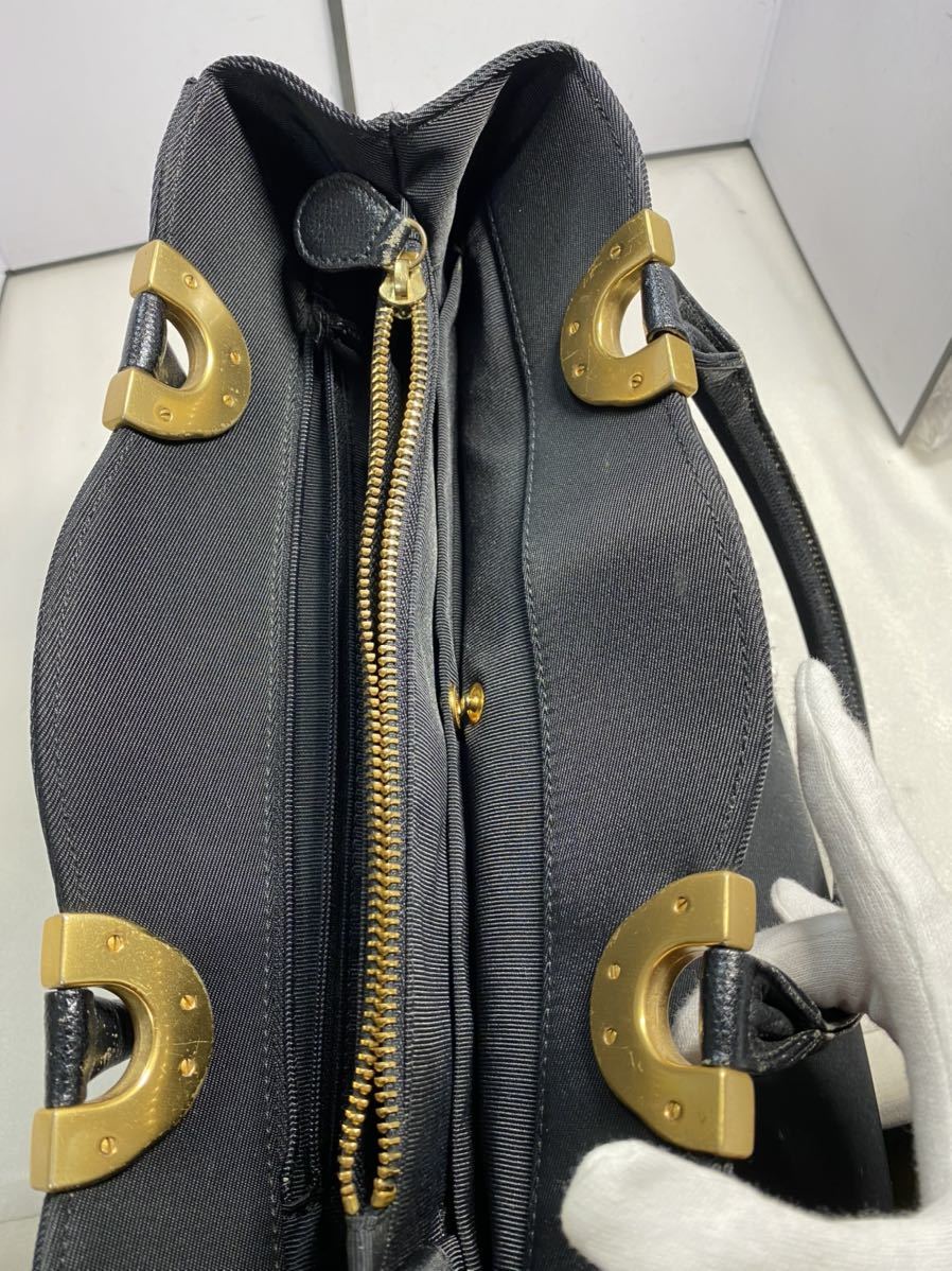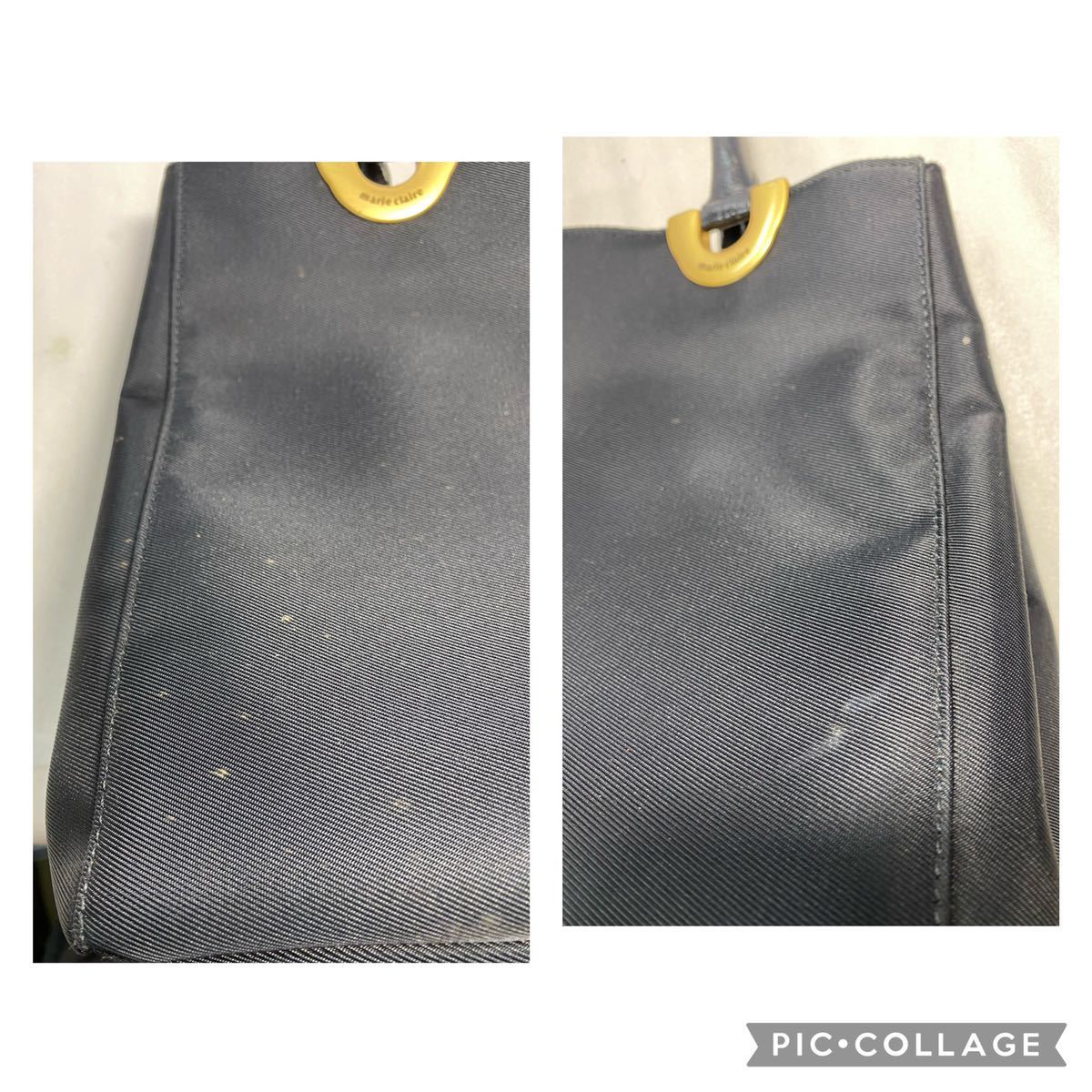 表のシミ、金具の剥げ、持ち手の汚れあります。
