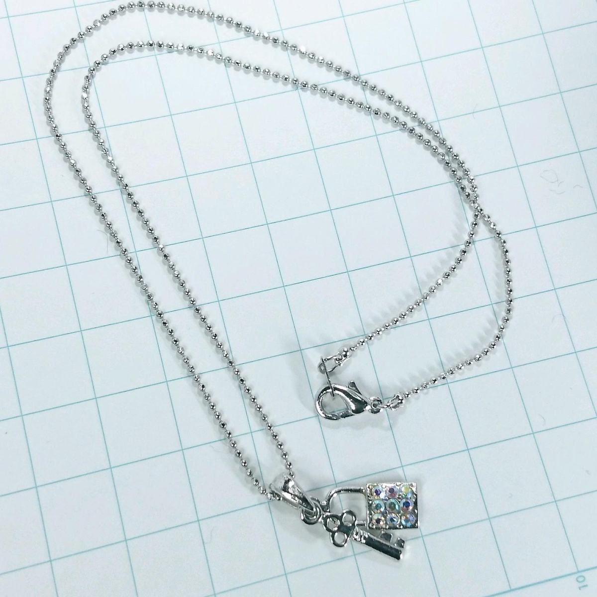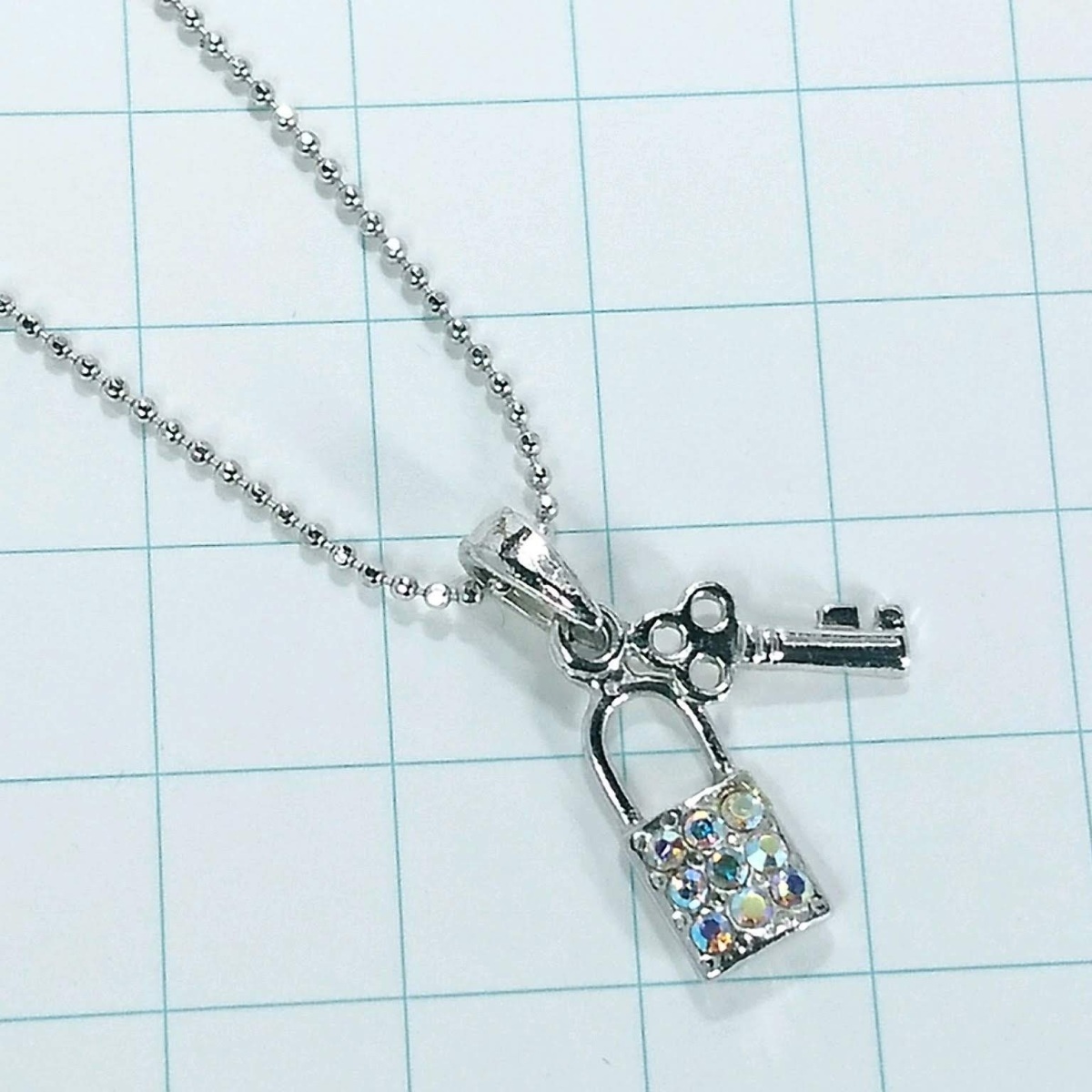 送料無料)ビンテージ☆南京錠モチーフペンダント☆キラキラ系 約39cm☆アンティークネックレス A05759