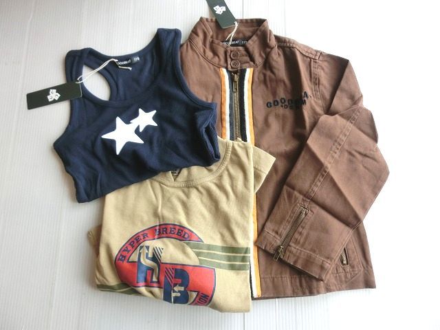 ★私のオークションをご覧頂き有難うございます^^ ★先日新規の方(オークションでのお取引が全く初めての方)や非常に悪い評価が10以上ある方で全ご連絡やお振込み頂けない場合が多くトラブル等続いております(T△T) 申し訳ありませんが、新規の方、非常に悪い評価が10以上ある方は入札前に必ず質問よりご連絡頂いてから入札をお願いたしますm(u_u)m ★激安スタートにつき1点づつのサイズ詳細は記載させて頂いていません。お品は全て新品未使用でたたみじわなどあるものもありますが、シミなどチェック時に見つけたものは記載させて頂いています。チェック漏れがあるかもしれませんが、あらかじめご了承ください。 また、プレゼントの包装などはできませんので予めご了承ください。 ジャケット ロンT タンクトップ ★こちらは、新品未使用の男の子の3枚セットになります。 これからの季節に色々と着まわせます♪ これからの夏に向けて普段着の洗い替えやプレゼントなどにいかがでしょうか? ★新品未使用ですが長期保管の為、出品の際にはチェックして気が付いたときは記載させて頂いていますが、たたみしわや小さな穴やシミや長期保管の為日焼けなど見落としがある場合があります。ご了承の上、入札をお願いします。少しでも気になる方や神経質な方は入札をご遠慮ください。 福袋のセットの内容は全て1点限りの組み合わせになりますので、ほかの福袋との内容の交換などはできませんので予めご了承ください。 ★また、ほかにも新品のブランドの子供服やサイズ違いの福袋など多数出品しています。お取り置き(1週間)もさせていただきますのでぜひごゆっくりご覧になってください♪ ★ノークレーム、ノーリターンでお願いします。 | |||