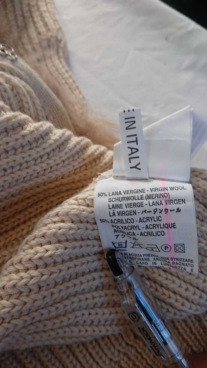 イタリアの人気ブランドSEVENTYの前開きセーターです。ウール50%アクリル50%です。イタリアの人気ブランドだけあって、デザインはとてもエレガントです。サイズは42表記で、日本だとレディースのMになります。新品、未使用品です。