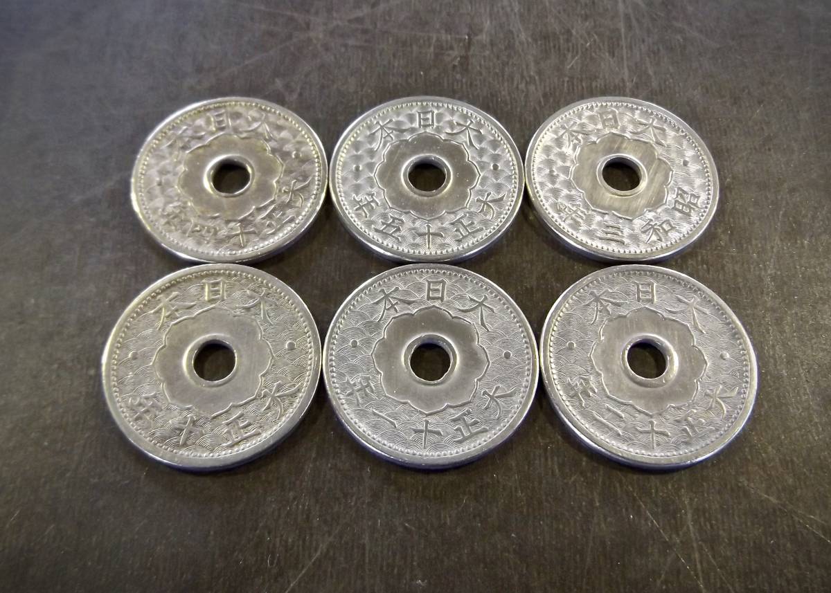10銭白胴貨 6枚セット 送料無料 (13610)  古銭 骨董 アンティーク 日本 貨幣 硬貨 近代 菊の紋章 お宝 コイン