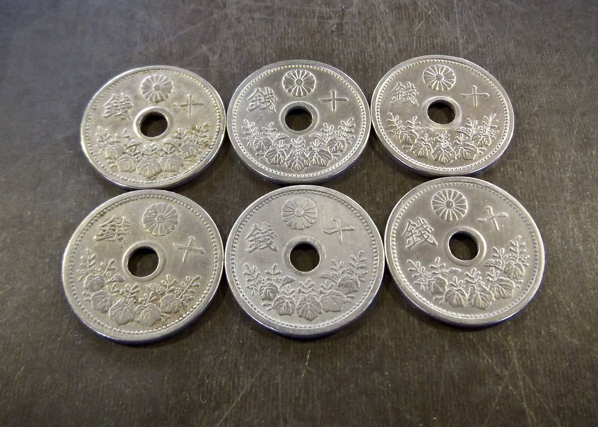 商品名:      10銭白胴貨 6枚セット   年号は写真で判断して下さい。