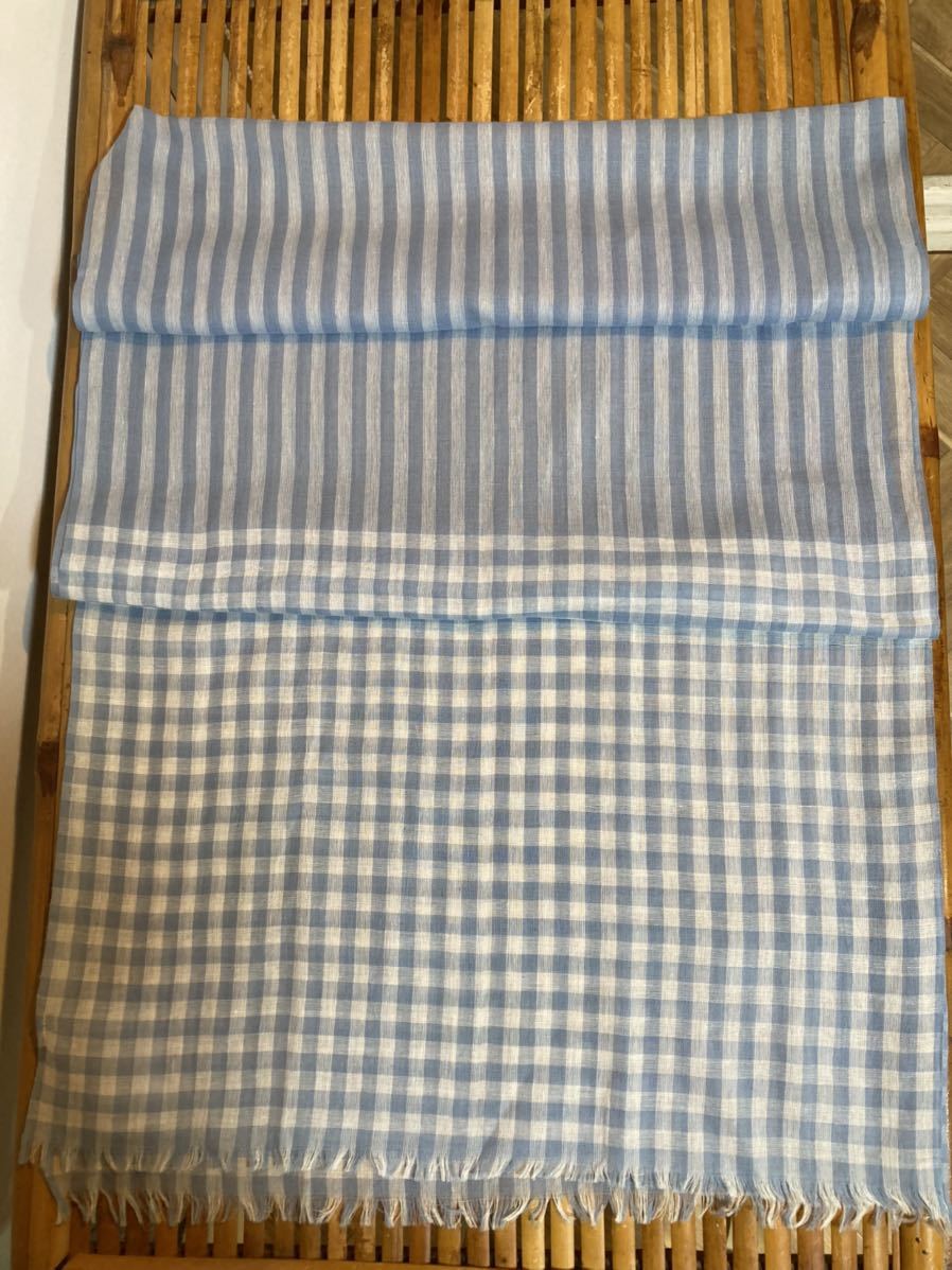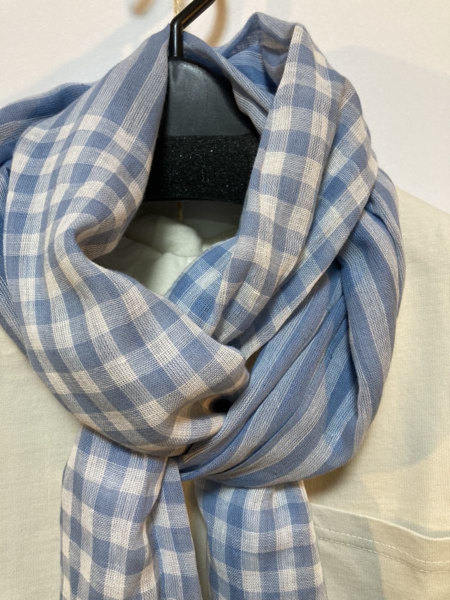 送料無料♪ C100% 春夏 *ブルー ギンガム・ストライプストール*  UV対策◎      ユトリコ   CHA-CA.