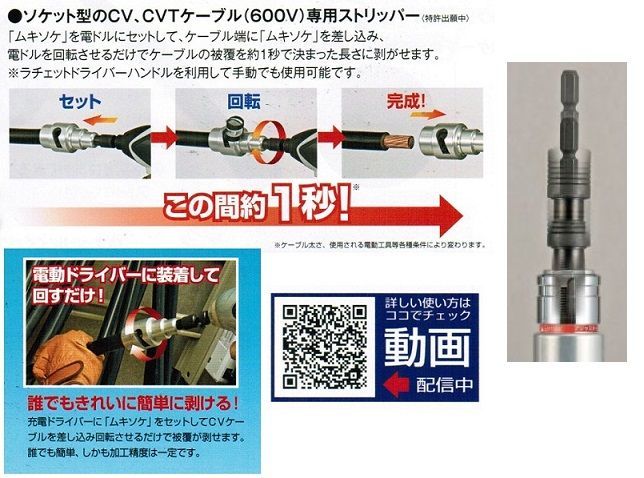 3.6V以上のドリルドライバーに装着し、CVケ-ブルを差し込み回転させるだけで、