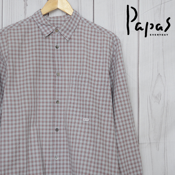 KS4506 パパス PAPAS 長袖シャツ 50 / L 肩48 ボタンダウン 格子柄 メール xq
