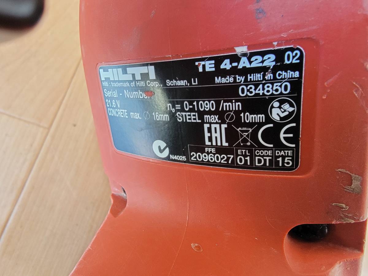 | ご覧いただきましてありがとうございます。 【HILTI】TE4-A22 充電式ロータリーハンマードリル TE DRS-4-A 集じんシステム 21.6V 3.3Ah 動作確認済みが入荷致しました。 こちら、電気設備会社様より買取させて頂きました商品となります。 画像の様に、それなりの使用感、各所に汚れはございます。 動作に関しては、通電し、簡易的な集じんテスト、各モード切替、正常に回転するのを確認しましたので、すぐにご使用出来ます。 画像、仕様ご確認頂きご検討ください。 <仕様> ●メーカー:HILTI/ヒルティ ●型番:TE4-A22 TE DRS-4-A 本商品の詳しい仕様はこちらよりメーカーホームページをご確認ください ■当方、専門職ではございませんので、本商品に対して専門知識がございません。大変申し訳ありませんが、専門知識を要する質問、動作にはお答え出来ない事もあります。何卒ご了承下さい。 ■外装清掃を行っておりますが、新品ではありませんのでキズや汚れが残る事があります。出来るだけ撮影を行い情報を提示しますが、当方での見落としもございます。コンディションに強いこだわりをお持ちのお客様はトラブルの原因となる可能性もございますので入札をお控え下さい。ご協力の程よろしくお願い致します。 ■画像にあるものが全てです。 ■その他ご質問はお気軽にどうぞ。 | |