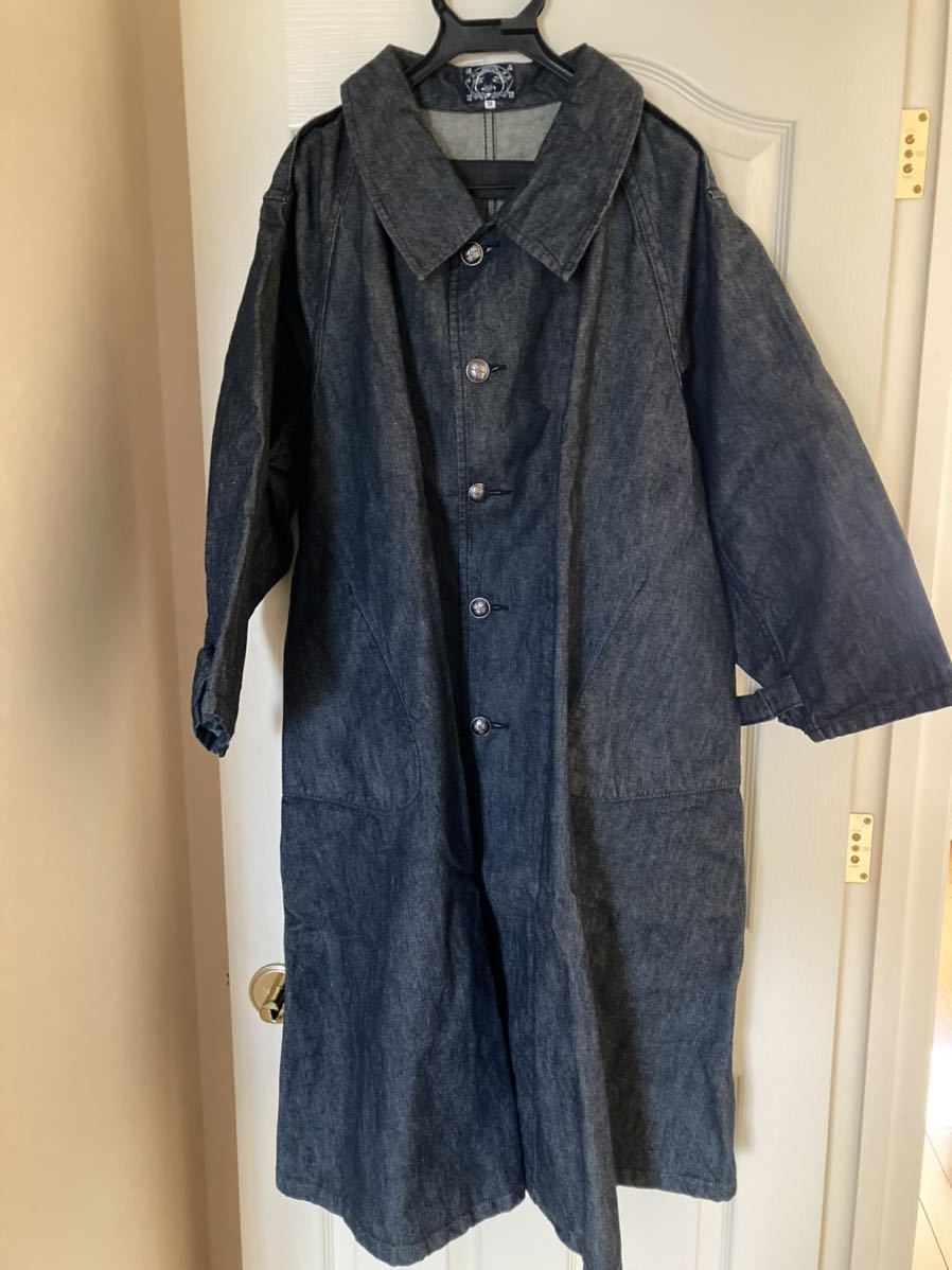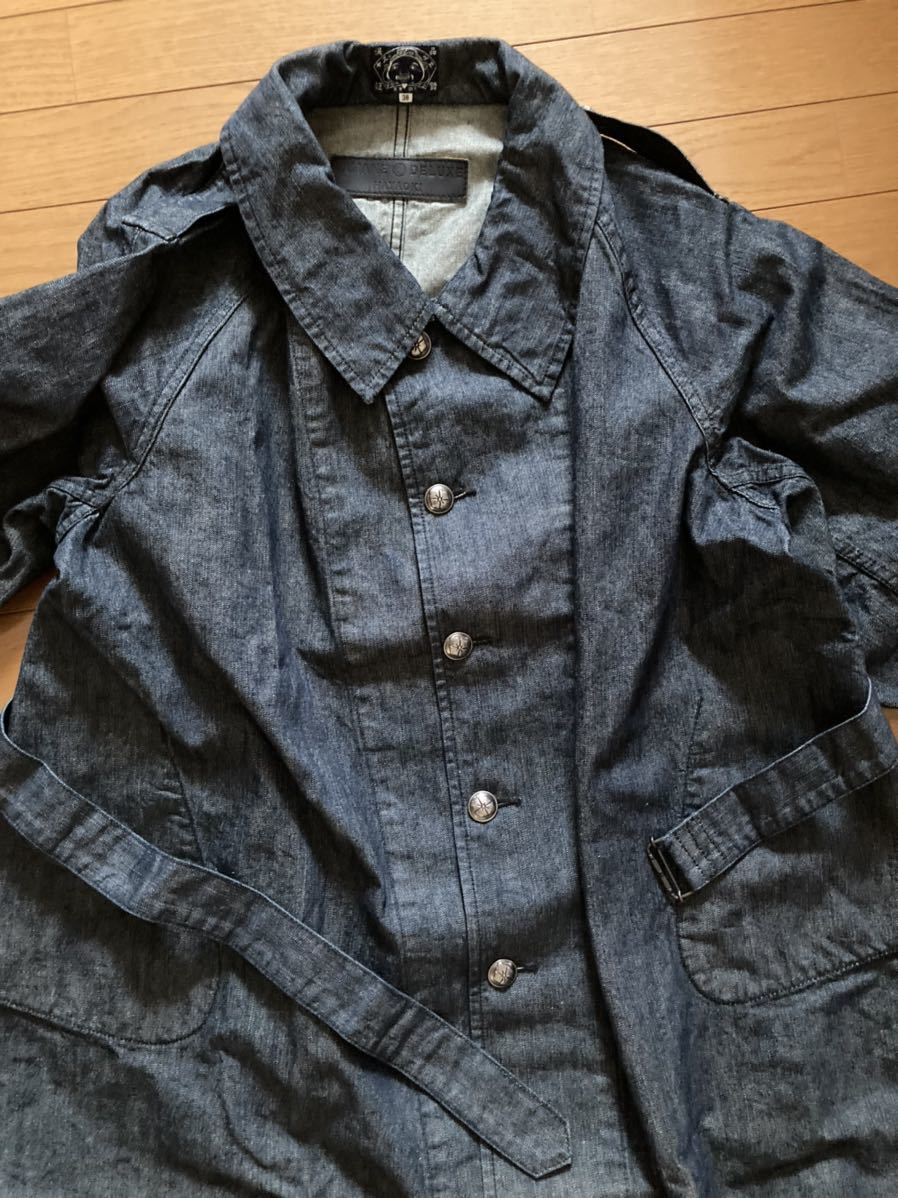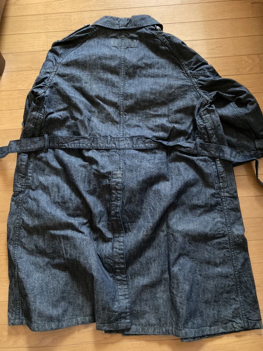 希少なエヴィスのちょっと大人なシリーズ山根デラックスのデニムシャンブレーのトレンチコートです。サイズ38で、大きめのサイズ感です。実寸は、身幅約67cm、袖丈脇下約40cm、着丈約110cmです。若干の誤差は、ご了承下さい。記憶では、1回ぐらいしか着用していないと思いますので、美品です。ノークレーム、ノーリターンでお願いします。