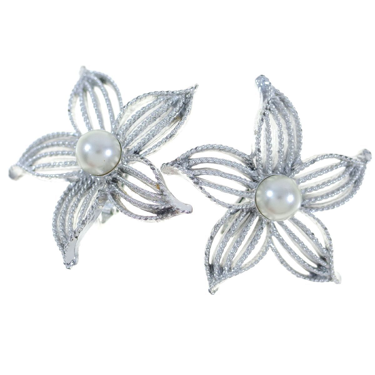 A7383◆【SARAH COVENTRY】◆ フラワーモチーフ * フェイクパールの飾り付きの花 ◆ ヴィンテージイヤリング ◆