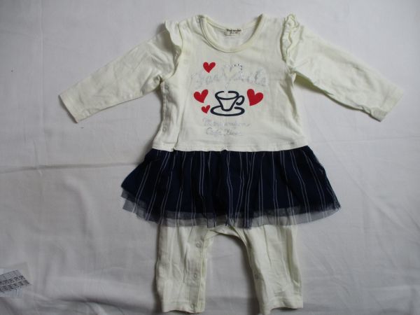 | BC985【moujonjon】ムージョンジョン プリント スカート付き 長袖 カバーオール 女児 生成 80 | |