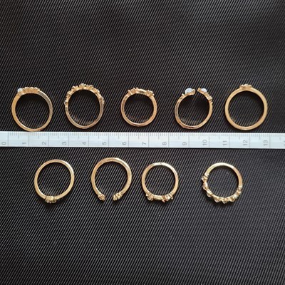 リング 指輪 ゴールド 9 セット ラウンド 中空 幾何 レディース ファッション クロス ツイスト クリスタル ジョイント ジュエリー #C756-9