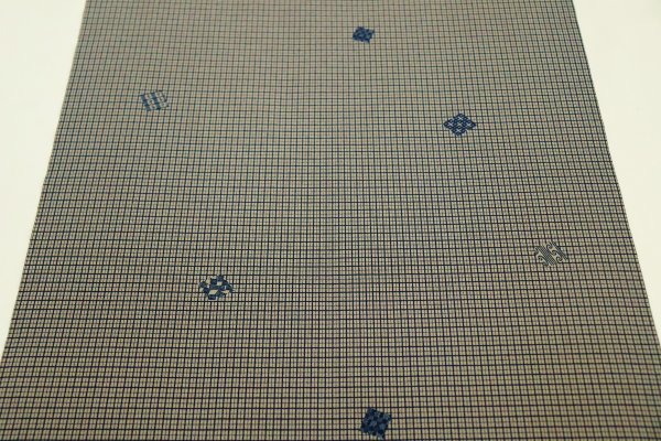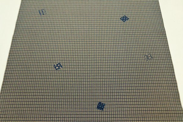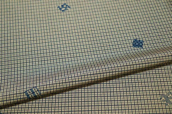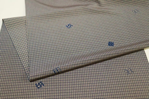 【京わぎれ】東レ シルック 男長襦袢はぎれ 高麗格子 薄茶グレー系×濃紺柄 替え袖用2.2m② | ||||