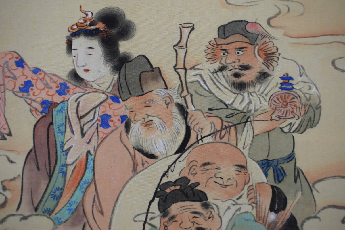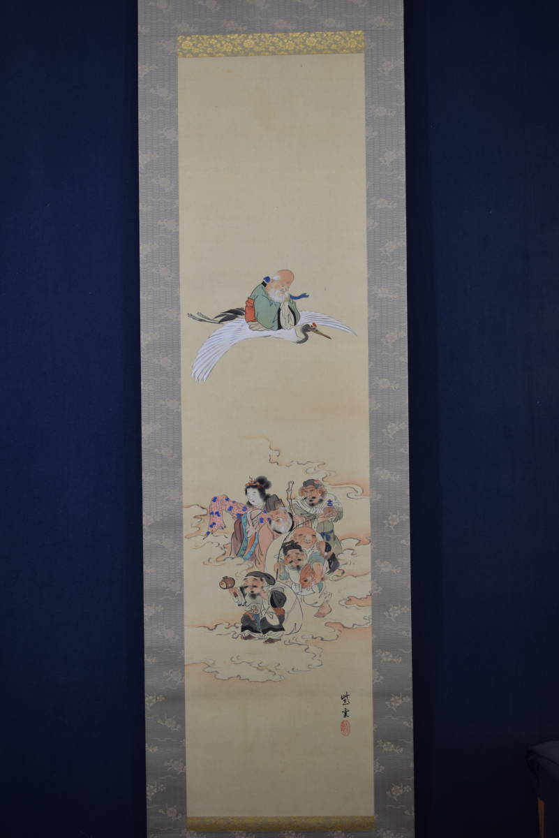 真作/紫雲/七福神来迎之図//掛軸☆宝船☆Y-603 JM