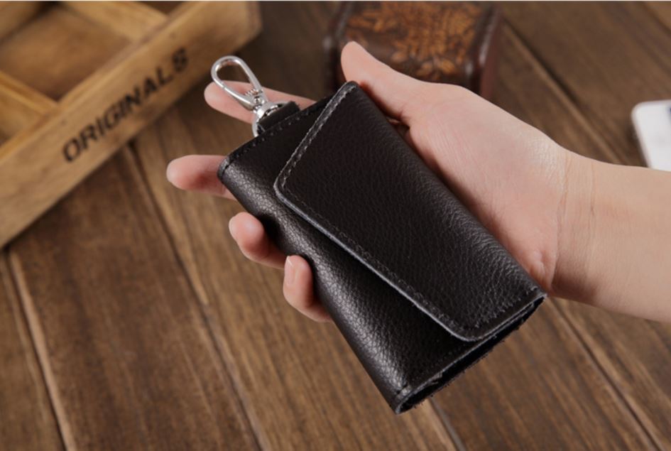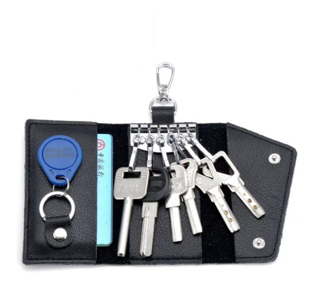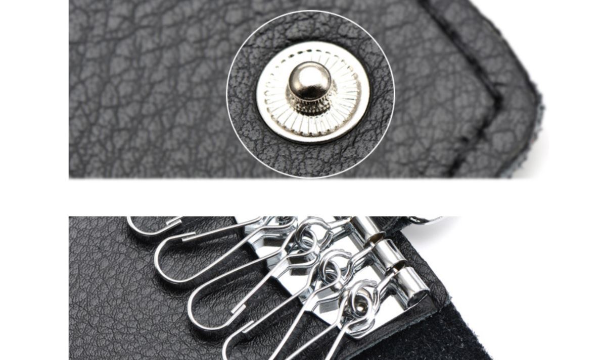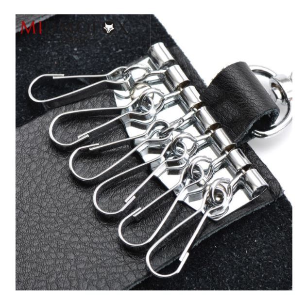 ブラック キーケース メンズ レディーズ カードキーケース レザー スマートキーケース 車キーケース 本革 6連 2ポケット カラビナ付き f5