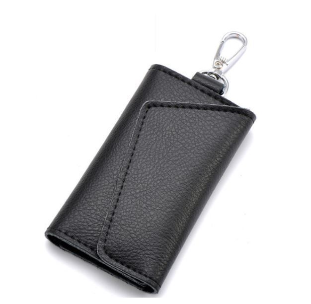 ブラック キーケース メンズ  レディーズ カードキーケース レザー スマートキーケース 車キーケース 本革 6連 2ポケット カラビナ付き 大容量 新品 送料無料 箱無し