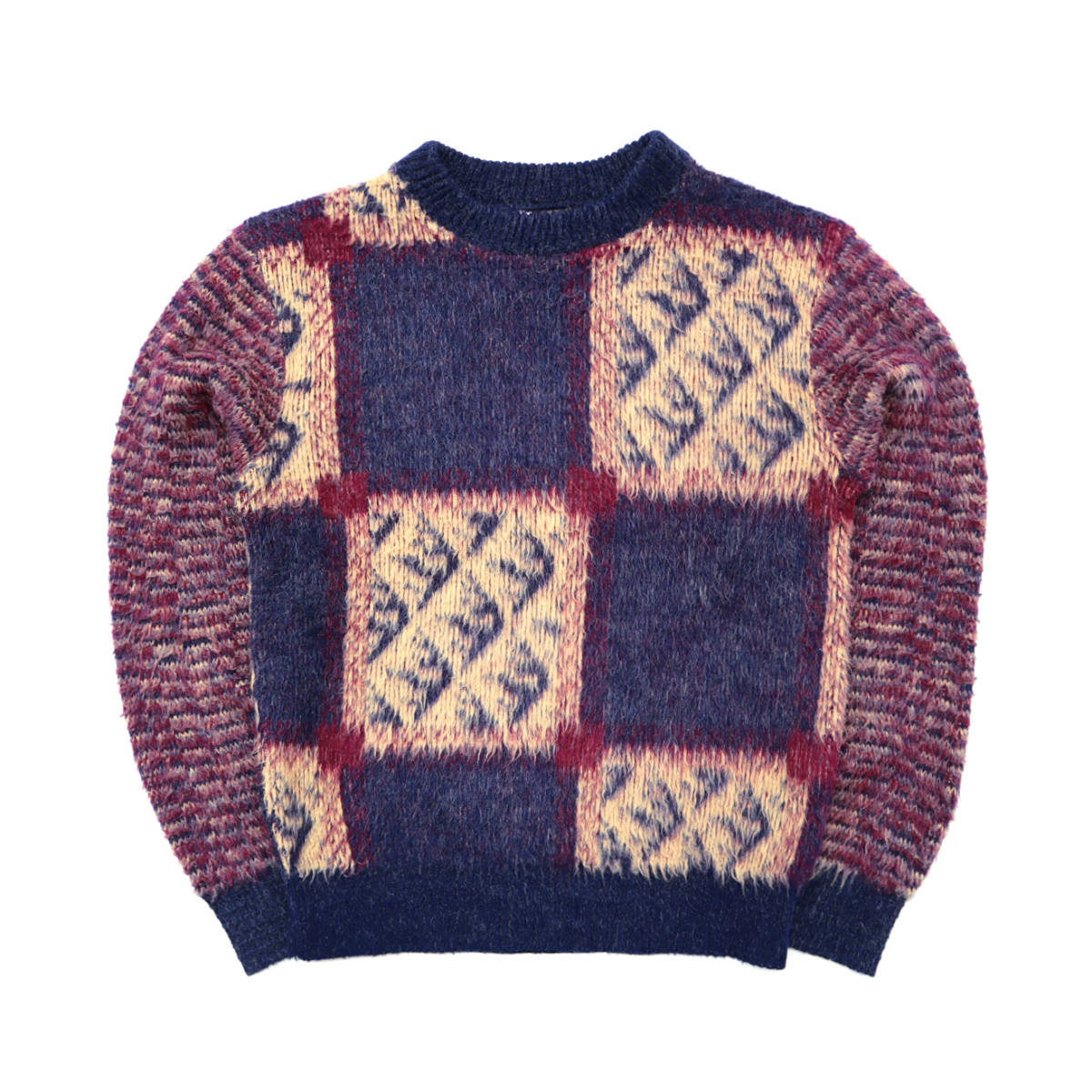 ☆送料無料 70s ビンテージ KENNINGTON ケニントン モヘア ニット セーター 総柄 グランジ ロック 古着 カートコバーン ニルバーナ メンズ