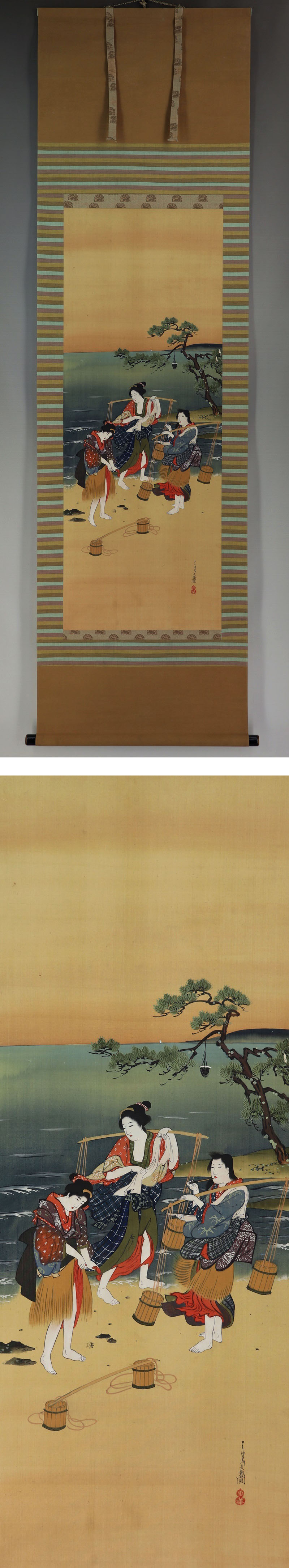 | №2009119 名品【真作】宮川長春【汐汲み図】◆絹本◆合箱◆掛軸 | |