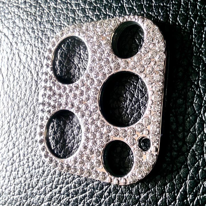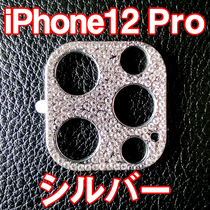 iPhone12 Pro 専用 カメラレンズカバー シルバー ラインストーン キラキラ お洒落