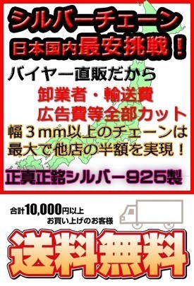 人気シルバーチェーンが卸値激安特価セール,シルバー925製を国内最安値挑戦価格にて販売中。彼氏へのプレゼントやクリスマスプレゼント、誕生日のギフトなどにも喜ばれる大人気の定番シルバーチェーンです。
