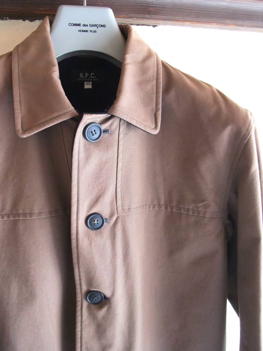 A.P.C. オイル加工 ヘビー コットン コート ウール100%裏地付き XSサイズ ririファスナー アーペーセー メンズ ジャケット 茶色
