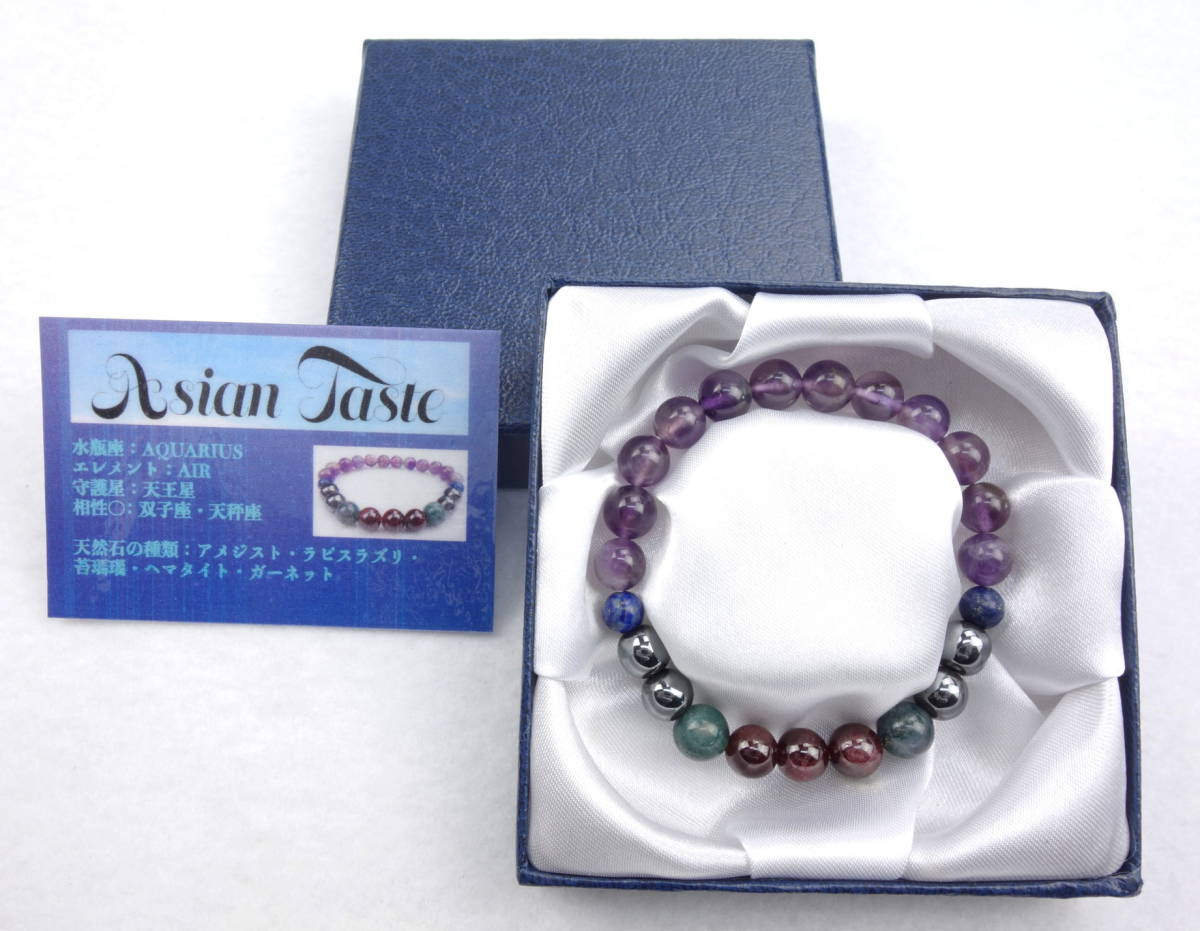 天然石 ブレスレット AQUARIUS 17cm 男女兼用 箱付き
