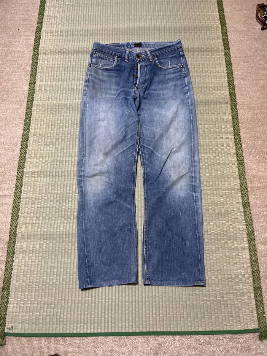 本商品平置きウエスト約40.5股下約75です、古着なりに薄手の色合い、生地感、微細なシミ等は有りますが古着なりに許容範囲であり味としてお考え下さい、