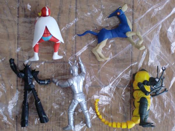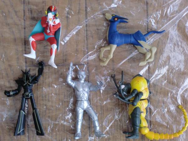 yujin SR タツノコヒーロー・ポリマー、フレンダーと 電人ザボーガー・ミスボーグ、 アイアンキング・クリケットン。 バンダイのHG ブラックライディーンの5体セットです。 開封済み品の古いものですので、お写真で現状をご理解いただける方のみ入札いただき、NC・NRでお願いいたします。 尚、迅速な対応を心がけてはおりますが、仕事の都合で、お支払い終了後、発送まで若干のお時間を頂戴する場合がありますのでご了承下さい。 又、深夜と平日の昼間は連絡が出来ない可能性がありますので、併せてご了承ください。 他にも「おもちゃホビー」を色々出品しておりますので、よろしければご覧下さい。