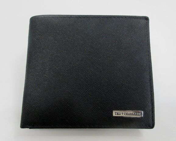 メンズ トラサルディ 2つ折小銭入付財布 プレート ブラック