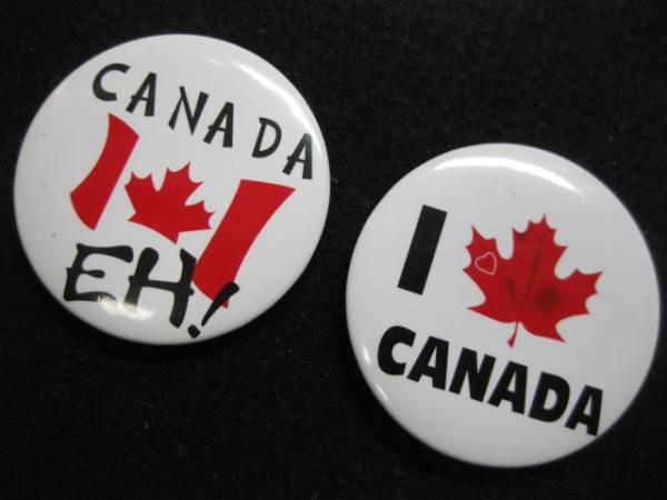 $ カナダ 缶バッジ 2個組 直径約45㎜ CANADA $