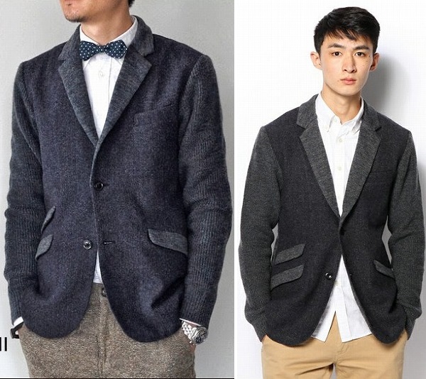 新品】 Johnbull 異素材 テーラード ジャケット ニット カーディガン タイト スリム 細身