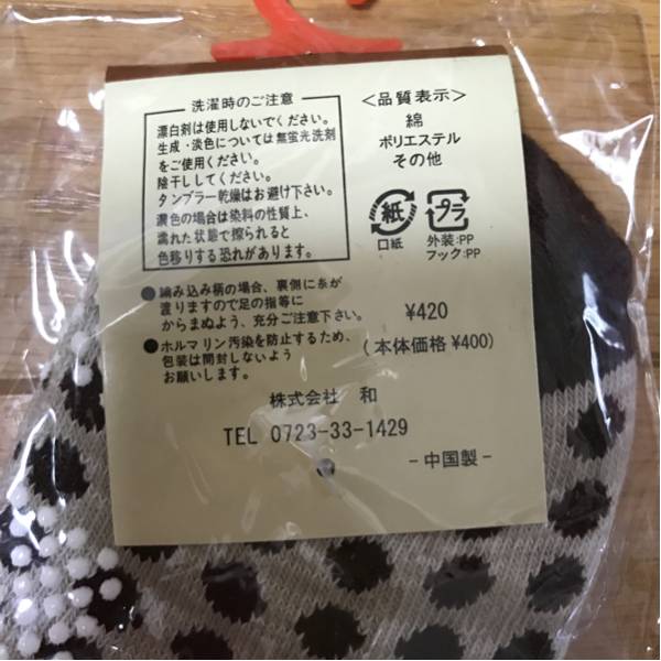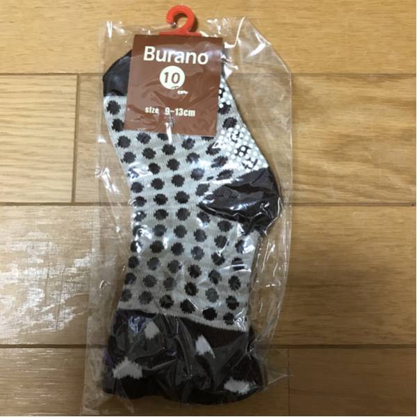 新品未使用 Burano 水玉柄靴下 9~13cm 茶色