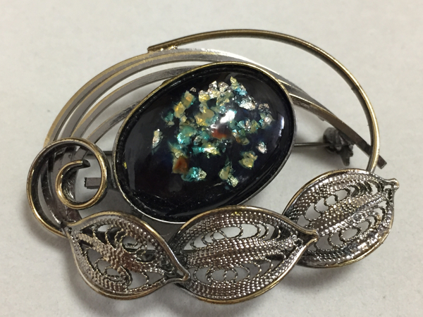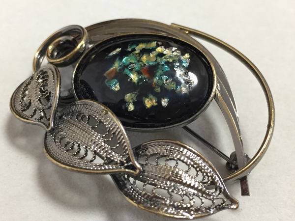七宝焼を使用し、彫金を施した、リーフブローチです。