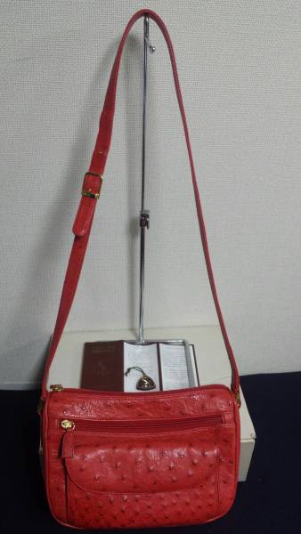 本物鑑定済 高級バッグ DALUVANI ダルバーニオーストリッチショルダーバッグ 赤色 JRAタグあり 取説付 ダルバーニショルダーバッグ中古品