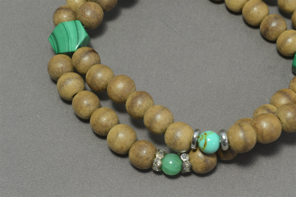 商品説明 | 沈香 約 8.5mm 48粒 ハウライトトルコ石 約 6mm 2粒 翡翠 約 6mm 2粒 マラカイト 約 13mm×約 11mm~10mm×約 5mm 2粒 内周 約 20cm |