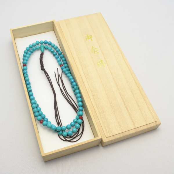 商品説明 | 主玉(ハウライトトルコ石) 約 8mm 天玉(瑪瑙) 約 6mm 親玉(ハウライトトルコ石) 約 9.5mm 内周 約 42cm |