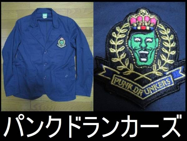 激レア パンクドランカーズ ブレザー 紺ブレ ワッペン 襟裏刺繍 隠しメッセージ Lサイズ PUNK DRUNKERS
