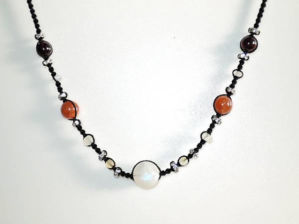 ★ピンクムーンストーン★天然石丸玉ネックレスペンダント★サンストーンガーネット★ブルームーンストーン★ビーズハンドメイド★kamesan