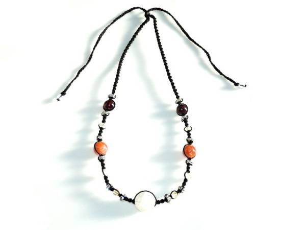ネックレスは、1000回以上の結び目があり、一回の結び目ごとに『マントラ』(仏教やヒンズ―教に伝わる真言)を唱え祈りながら身につける人を守るように気持ちを込めて、ネックレスに仕立て上げています。