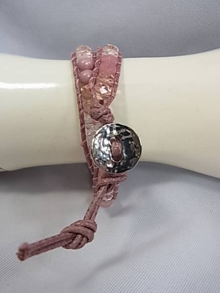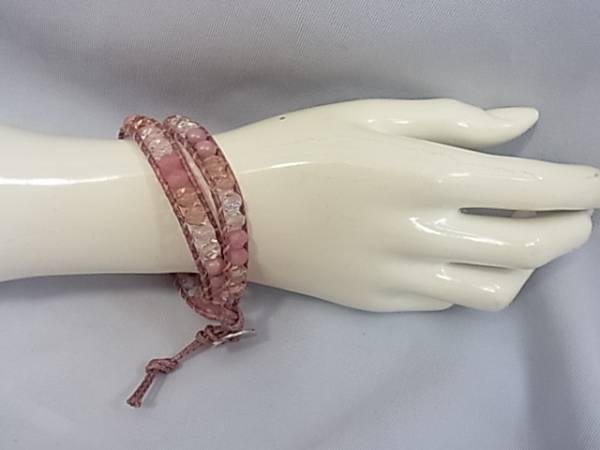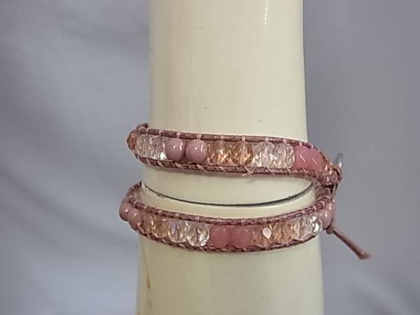 ・銀色のボタンを紐の穴に入れて留めます。 ・お色は、藤色系ピンクです。 ・サイズは、全長42cmくらいです。 |
