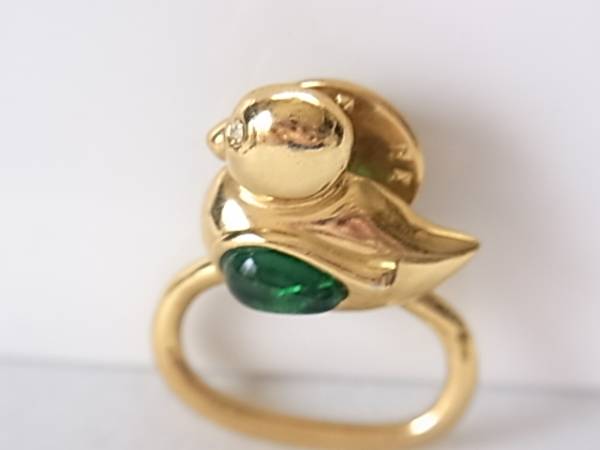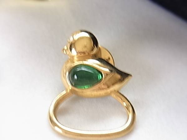 鳥☆緑ストーン瞳はキュービックジルコニアタックピンブローチ△
