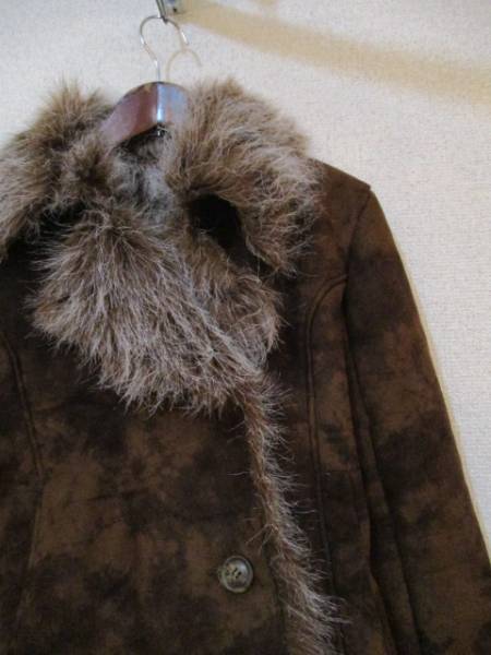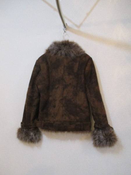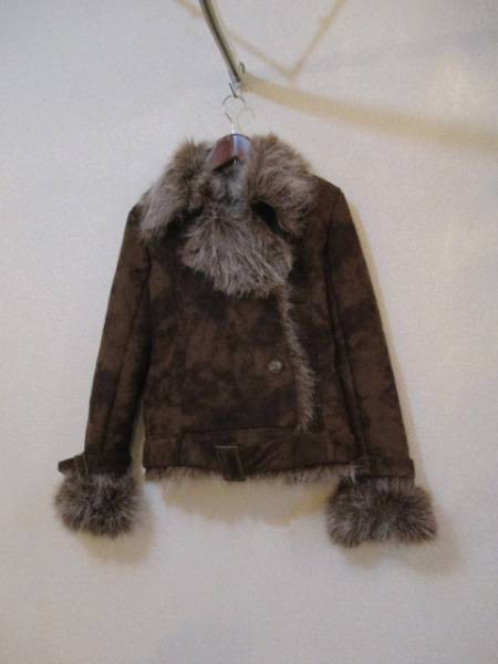 | 商品紹介 | スエードのような加工が施されたブルゾンです。 裏側には全体にフェイクファーが付いています。 ダブルボタンのような形ですが、表側の右にはボタンが付いてなく、 やや左にボタンが付いたようなデザインです。 裾にはベルトが付いています。 色は茶です。 ※色がまだらだったり、線状の跡がありますが、購入時からのものです。 《素材》 スエード部分:ポリエステル100% ファー部分:アクリル100% |