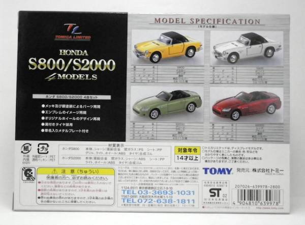 トミカ リミテッド HONDA S800/S2000 4MODELS | |||