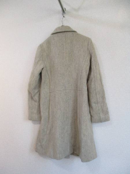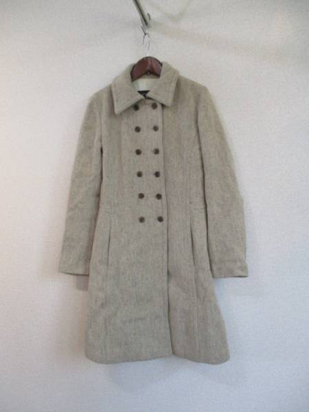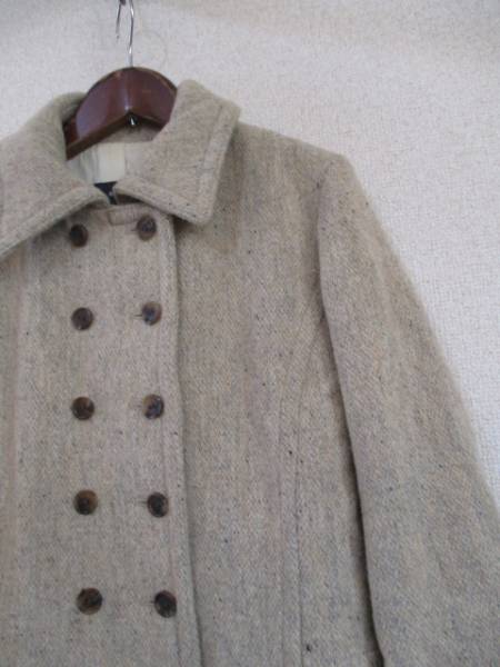| 商品紹介 | ダブルボタン、ウエストが少しシェイプされた形のコートです。 パッと見ベージュですが、ベージュの他グレーや白、黒等の糸も混ざっています。 ※規定の封筒に入らない為、レターパックでの発送はできません。 《素材》 表地:ウール98% ナイロン2% 袖裏:キュプラ100% 身頃裏:綿100% |