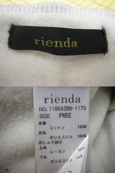 ▼【美品】rienda〈リエンダ〉袖レース裏起毛トレーナー FREE