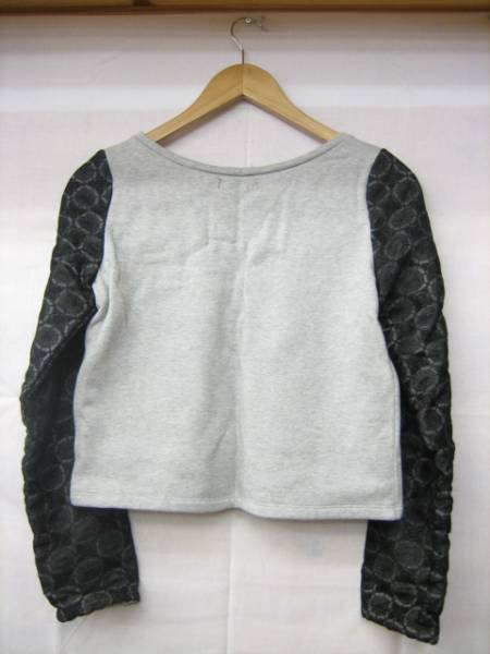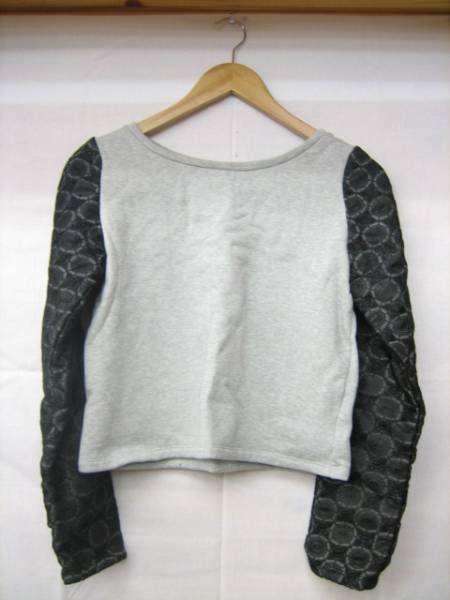 ▼604▼【美品!】rienda リエンダ / 袖レース 裏起毛 トレーナー レディース FREE 黒 ブラック グレー 中古 ユーズド 古着