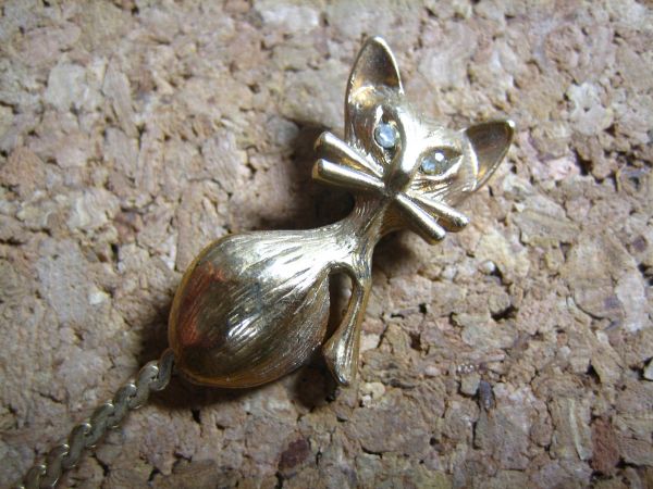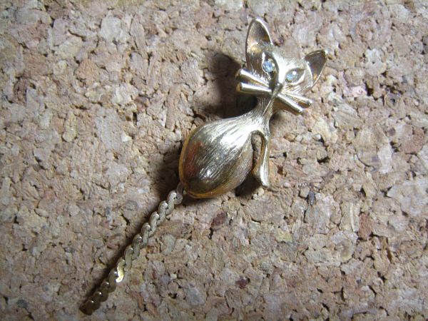 ピンバッジ ネコ ゴールド 猫 尻尾 キャット